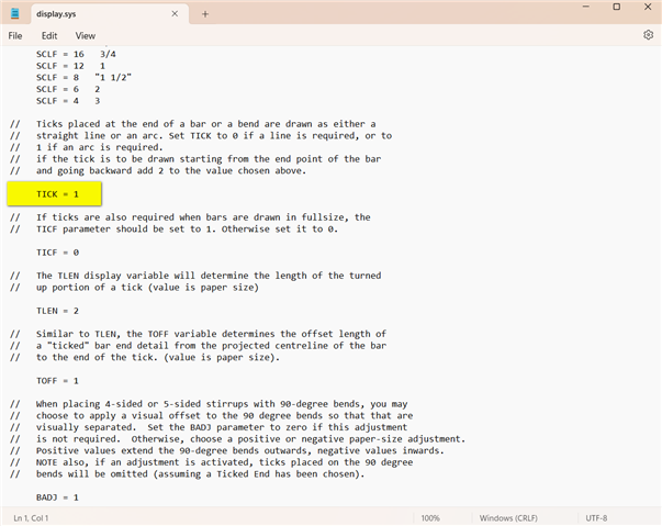 3.在此文件中,我们找到变量“TICK”,此变量控制了我们钢筋末端的2D显示
