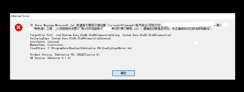 厂用电设计加载模板报错:数据库引擎找不到对象