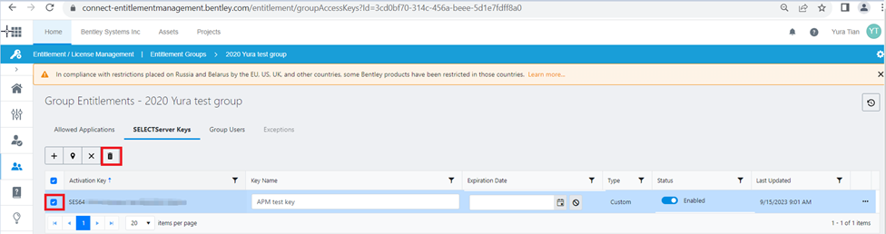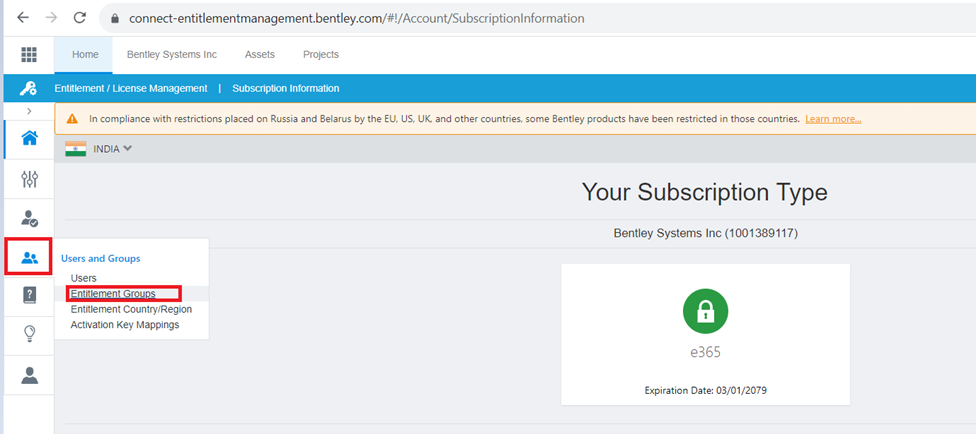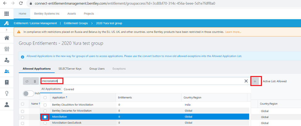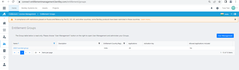 2.等待片刻后创建的用户授权组将会同步到授权管理网站https://connect-entitlementmanagement.bentley.com/