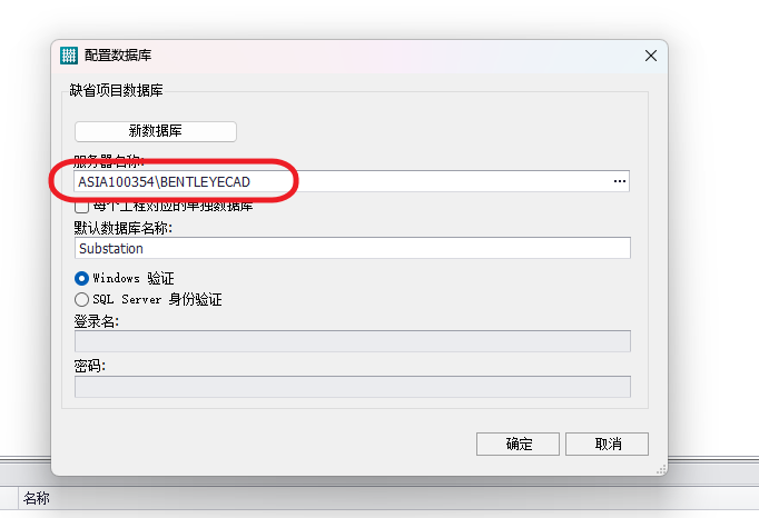 2.在服务器或者远程机器上的Substation中,进入数据库配置,修改其服务器名称为机器名+数据源名称;