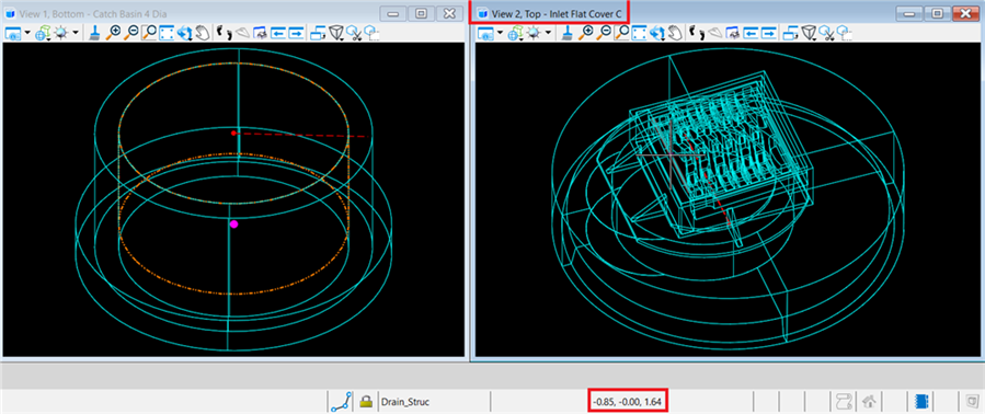 下面是节点 Inlet Flush Grate的顶、底部单元。 节点井顶部高程定义为1.64 feet: