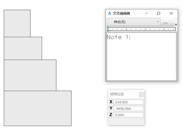 1. 打开放置批注工具,在图形中点击要标注的位置,并在弹出的文本编辑框中输入批注,同时保持精确绘图的对话框打开;