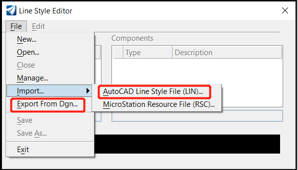 4. 在线型编辑器里从 Dgn 导出 .RSC 文件。