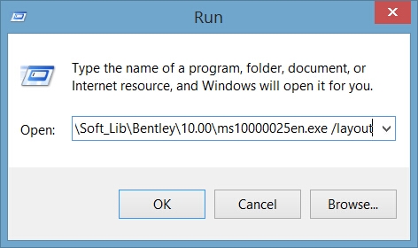 2、在Windows的执行对话框中选原始安装程序Setup_MicroStationx64_10.17.02.061.exe,然后手工附加空格和/layout参数。点击OK(确定)按钮执行。如下所示: