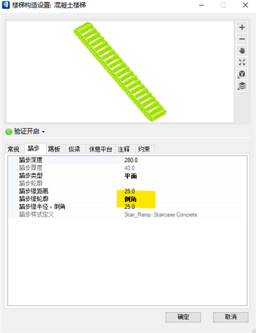 楼梯显示为线框模式的原因:楼梯的踏步在加载楼梯设置中的"踏步缘轮廓"设置成了圆角导致的,
