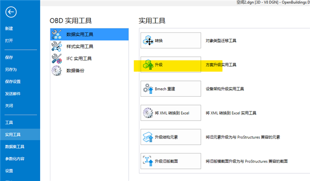 打开:文件→数据实用工具→升级,在弹出的对话框中点击升级即可