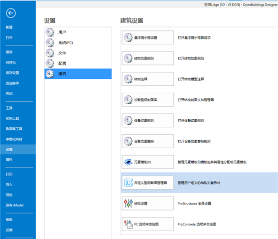 1.我们打开:文件→建筑→自定义型钢截面管理器