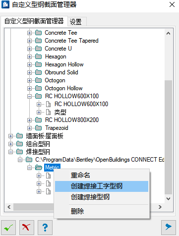 而变截面型钢只能通过焊接型钢来进行放置,所以我们只需要增加焊接型钢的类型即可。