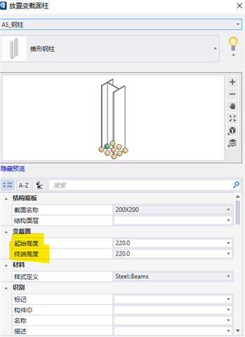 4.重启软件,我们即可在变截面梁柱中找到创建的截面,输入起始高度和终点高度即可