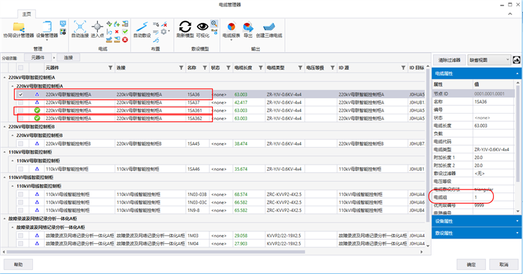 或者电缆清册导入时,将对应成为一组的三根电缆的组号写为一组: