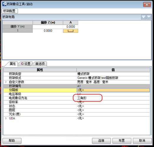 1.在创建桥架时,将桥架的敷设方式改为三角形敷设: