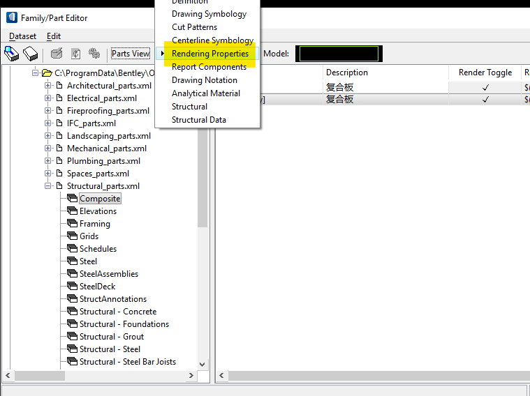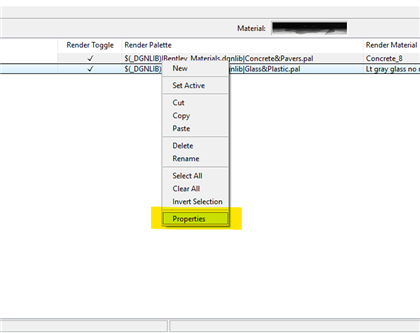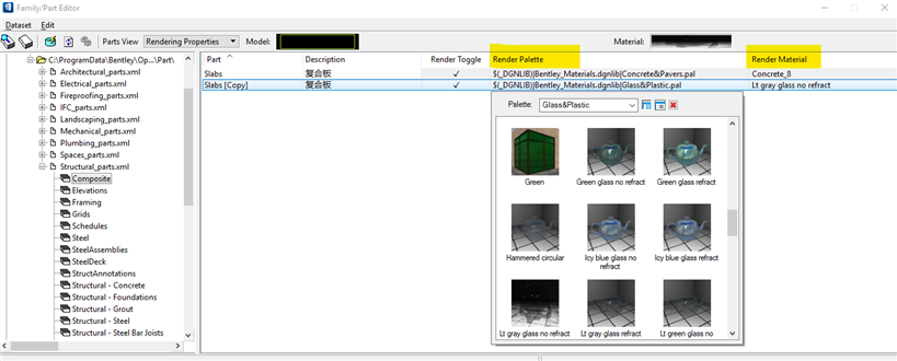 4.右键点击对应样式,在弹出的面板中选择想要的“render palette”和“render material”,