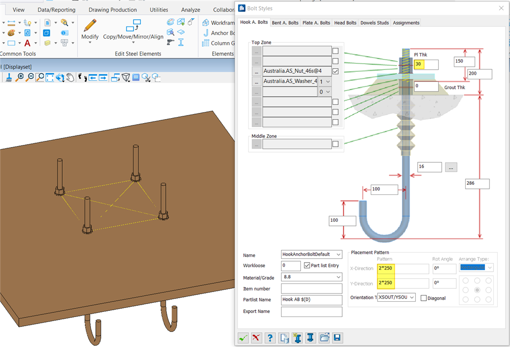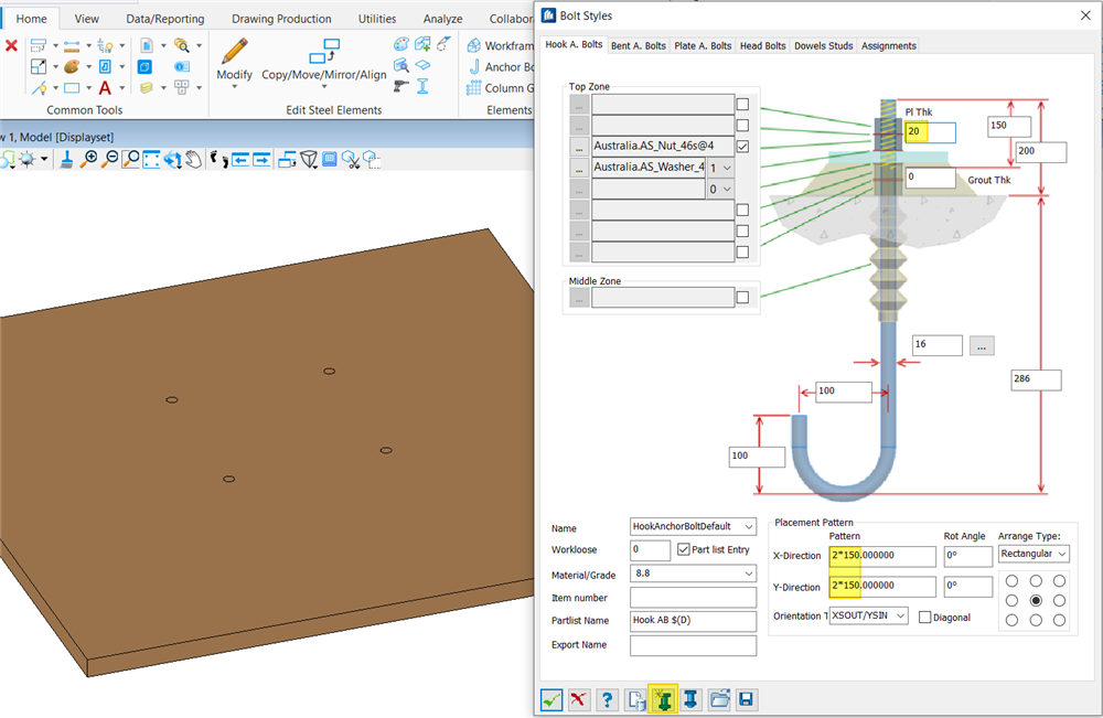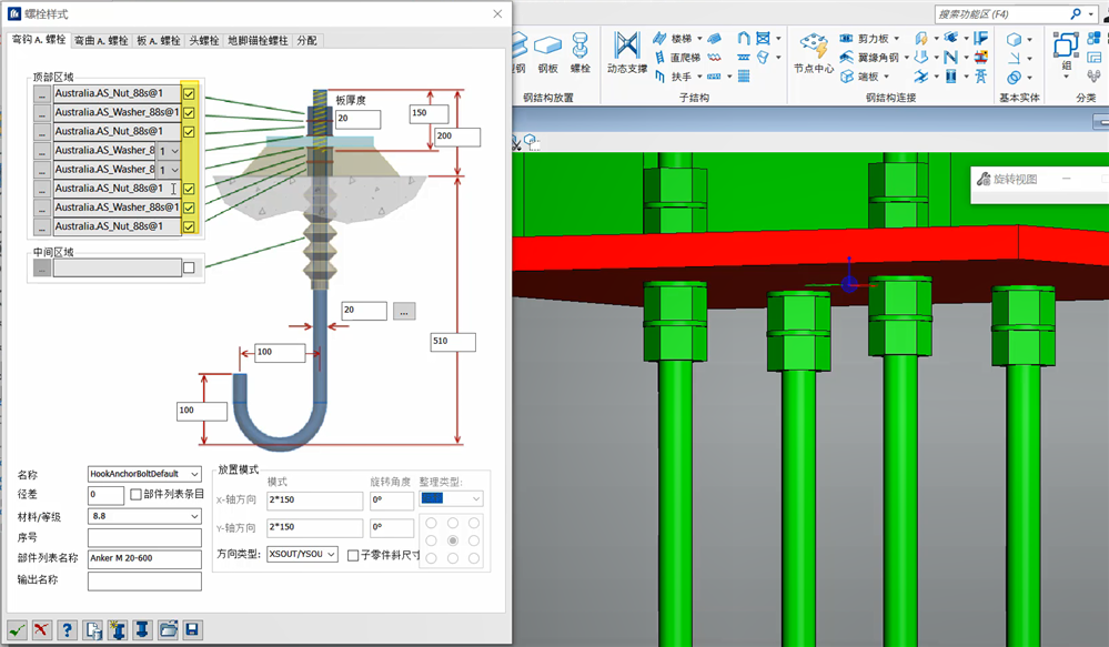 A. 如果用“依托钢板生成锚栓” 生成的锚栓的大小和间距会自适应钢板上开孔的大小及间距,板厚也是,不会依照输入的值