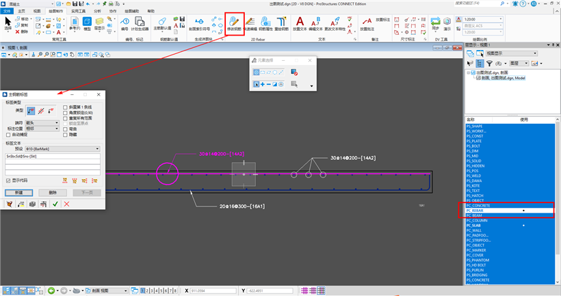7.对不需要的图层进行隐藏,并在2D Rebar中修改标注生成的二维图纸