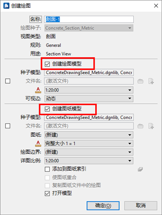 6.在弹出的对画框中勾选“创建绘图模型”“创建图纸模型”,点击确认,生成绘图模型