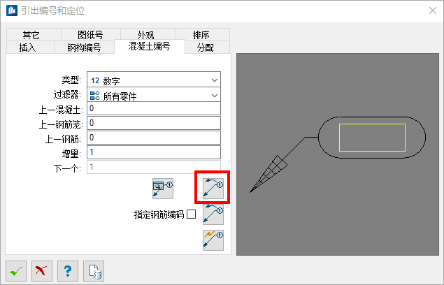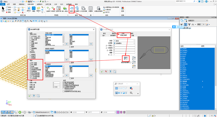 4.点击编号按钮,选择要编号的所有钢筋,完成编号。