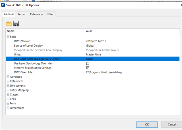 那么如何得到想要的结果呢?这里介绍一个参数Line Code Scale,在Save As DWG时的Option中可以看到。