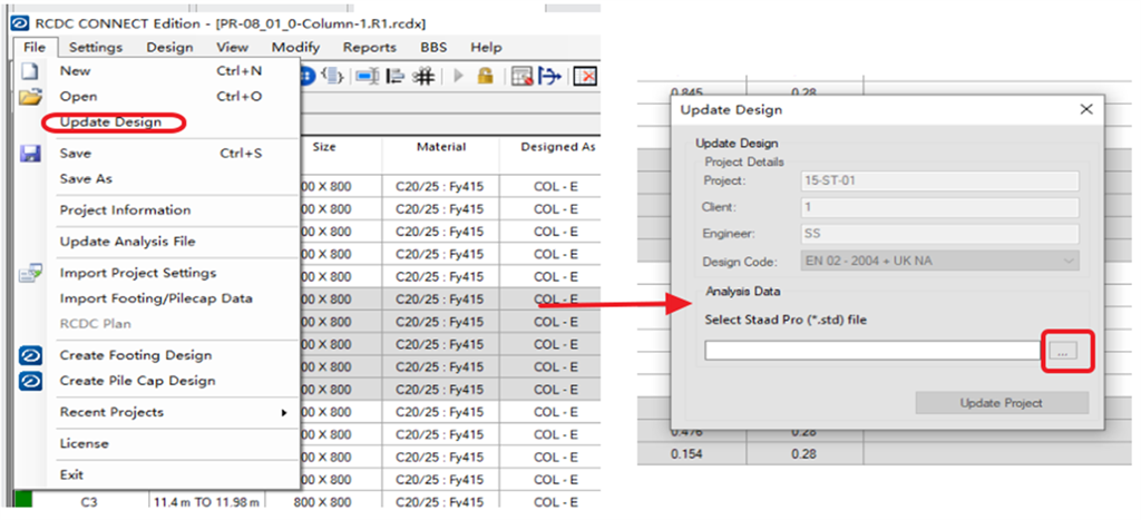 计算模型Std文件有改变时候,如何更改已经验算的RCDC文件呢这个手动来进行设计模型的更新,点击下图中的… 就能再次选择std文件。