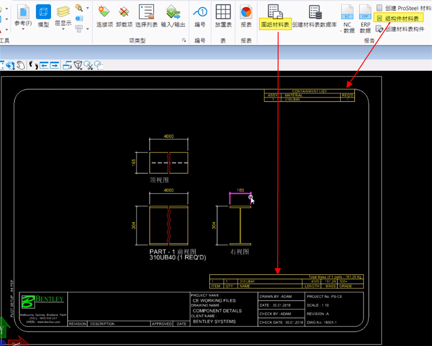 B. 图纸的内容和修改:图纸材料表和组构件表自动生成,双击查看编辑图框,解锁修改图纸中内容