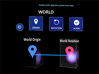 按“NEXT下一步”后,将出现真实世界的ORIGIN(原点)和ROTATION(旋转)选项,其中World Origin pin(物理原点)设置在与Digital Origin pin(数字原点)相同的位置上,以及相同的ROTATION(旋转)。设置后,选择“ALIGN对齐”。