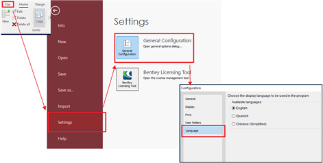 File-Settings-General Configuration-language-选择需要的语言进行界面切换。