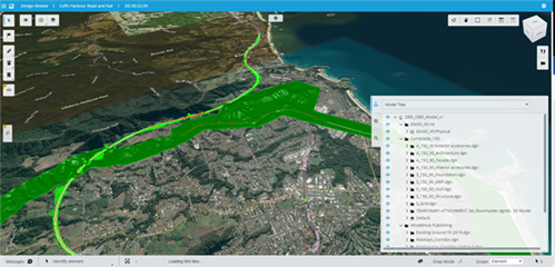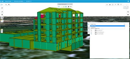 从上图中,你可以看到,这个iModel包含了dgn和Revit两种原生数据类型。选择后,点击“Enter iModel”就进入浏览界面。加载完成后,你就会发现模型被放置在正确的位置上了。