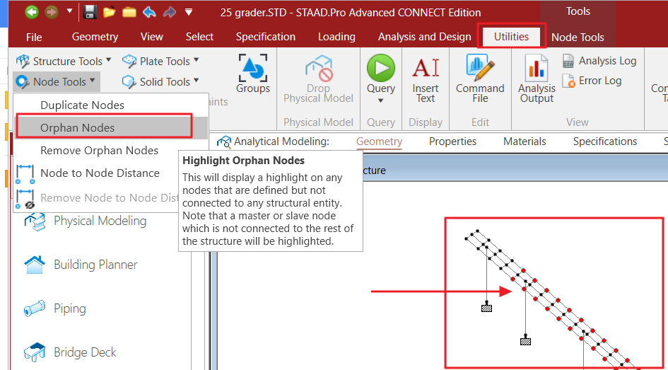 合并后,我们在用Utilities工具中,Node Tools中的Orphan Nodes检查是否有重复的节点,可以看到这个模型中存在大量的孤立节点,然后我们用Node Tools中的Remove Orphan Nodes 工具,将孤立的节点删除。
