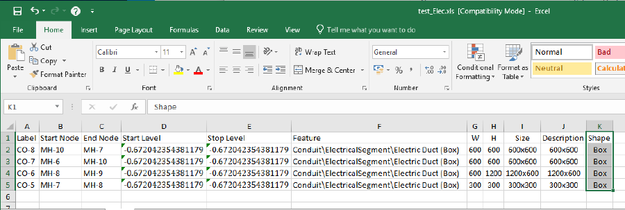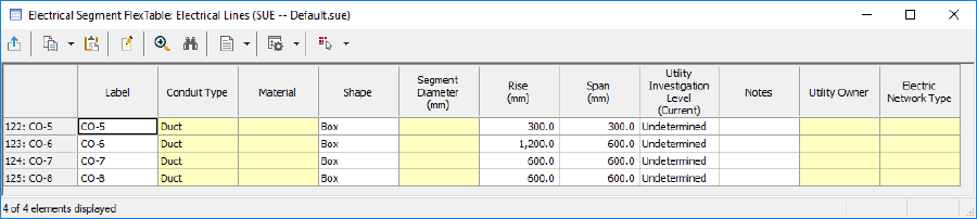 导入数据后,检查FlexTable里的电力管道(electrical conduits),rise和span的值都应该是对的。