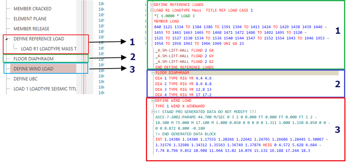 当模型中存在参考荷载、刚性楼板及风荷载定义时候,应该先设置参考荷载、再是刚性楼板,最后是风荷载定义,如下图所示的文本命令排序。