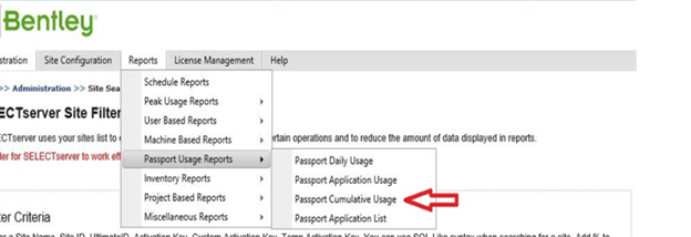 2. 点击Passport Reports >> ProjectWise Passport Usage