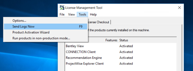 Bentley CONNECTION Passport 是按照用户名(即windows的登录帐号)来计算使用量的,其使用报告可以从服务器获取。为了得到更加全面更加实时的使用报告,在管理员获取报告之前,需要管理员在PW服务器上做一下send logs的动作。请打开LicenseTool( 位置:C:\Program Files\Bentley\ProjectWise\bin),点击Tool>>Option>>Send Logs