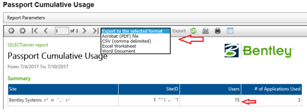 4. 点击Run Report. 选择文件格式,点击Export将报告导出。该报告上总的Users数量即为该段时间所用的PW的总量。
