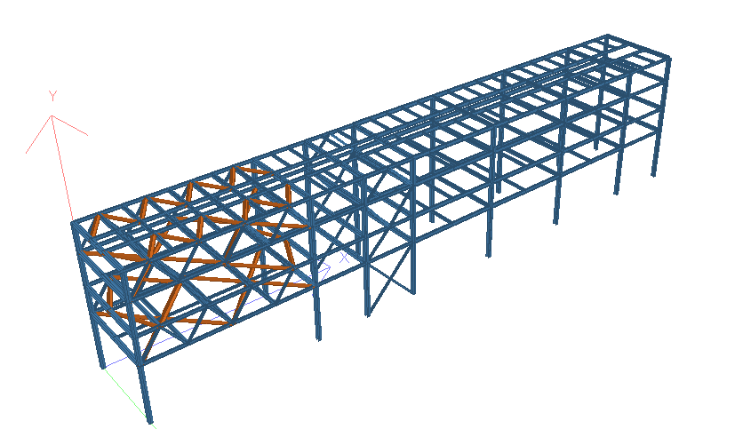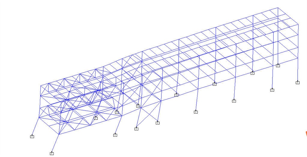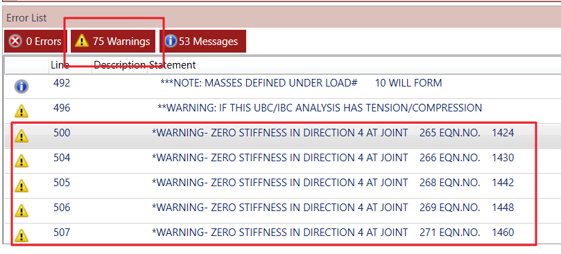该模型示意图如下:采用的是排架体系(榀和榀之间的连接杆件端头为铰接),而Waring中刚度为0的方向为Direction 4 也就是Mx方向。且该模型在纵向设置了柱间支撑,模型为稳定体系,那么为什么软件仍然会给出警告提示呢?