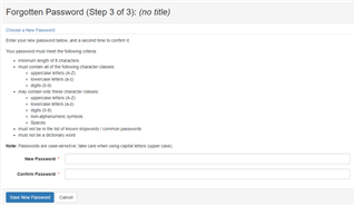 4.Enter a new password twice. Your password will need to conform to the password rules displayed on the page - these rules have been set by the server administrators. Click Submit.