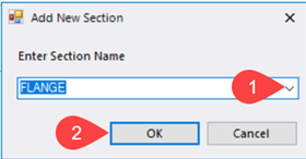 - In Add New Section dialog, enter desired sections name here FLANGE