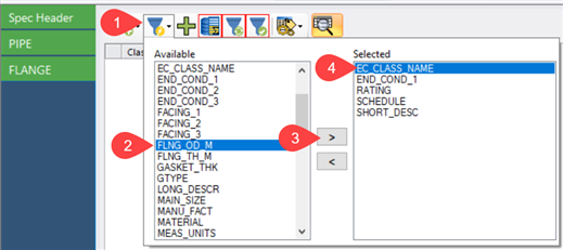 - Click on Add Class to Section. From Available classes, pick/select desired classes to include for the FLANGE section. Refer image below.