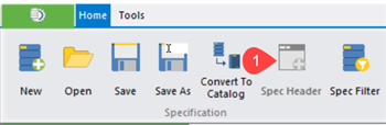 - From Specification ribbon group, click on Spec Header ribbon tool.