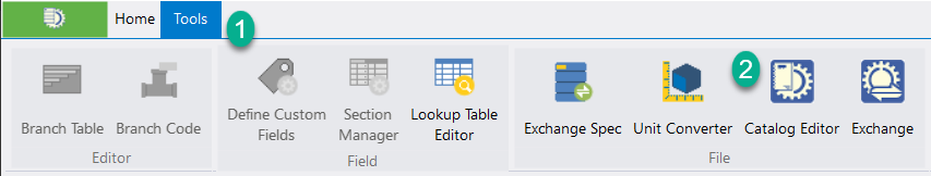 - Once Specification Generator is launched, from the Home Tab, click on Tools tab and select Catalog Editor.