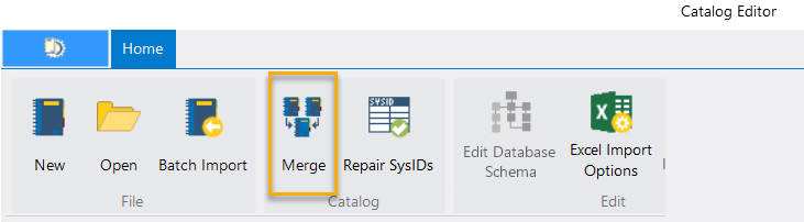 - From Catalog Editor option, select Merge option.