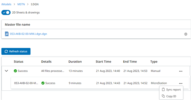 Please refer to the individual product documentation to determine where such a report is exposed in the interface. For example, in Bentley Infrastructure Cloud, you can find the Sync Report in the synchronization status table; refer to Image 2.