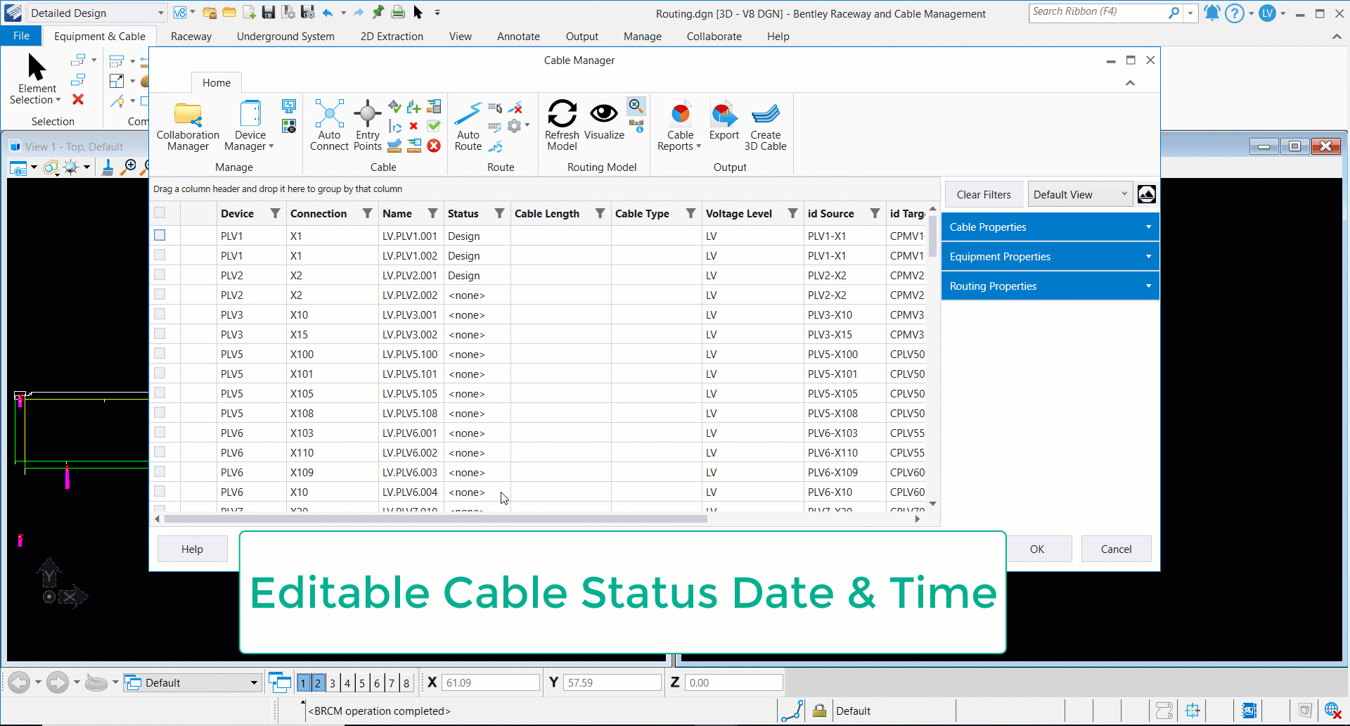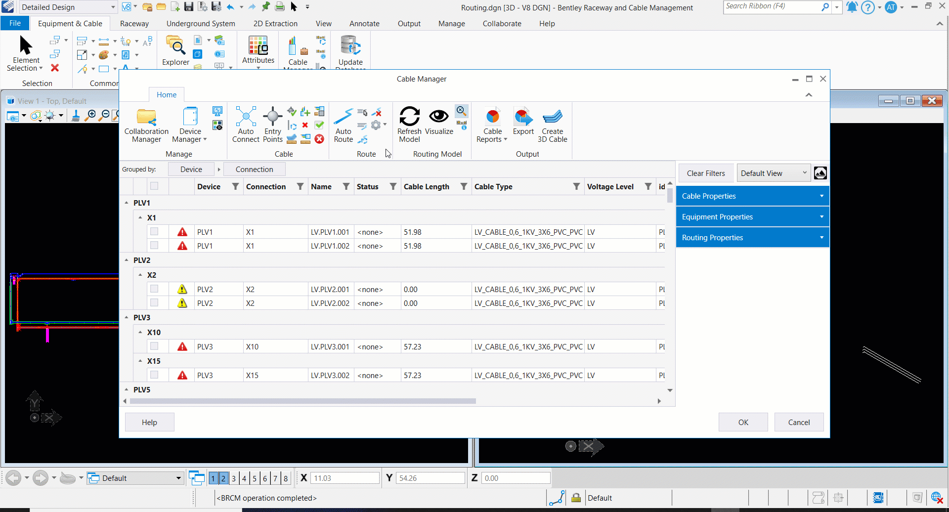 After performing cable routing the results are now loaded and displayed in the Cable Manager much faster than in previous versions. |