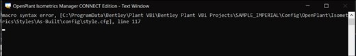 While working with AutoPLANT Modeler and OpenPlant Isometric Manager CE, user may below error message while generating the isometrics drawing. This wiki article explains the steps to resolve this issue.