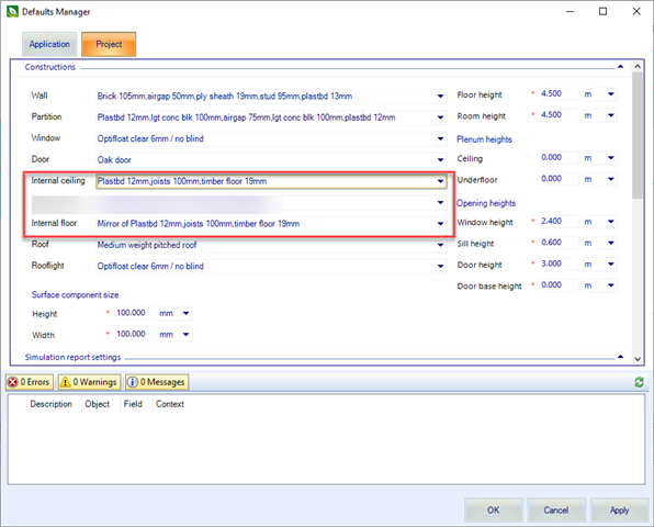 For example, when the below internal ceiling is selected, the Internal floor type updates automatically to show the mirrored construction.