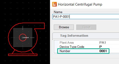 In OpenPlant PID CONNECT Edition, upon placing components like Equipment, Valves, Pipeline etc, it shows number property in four digits as shown below.