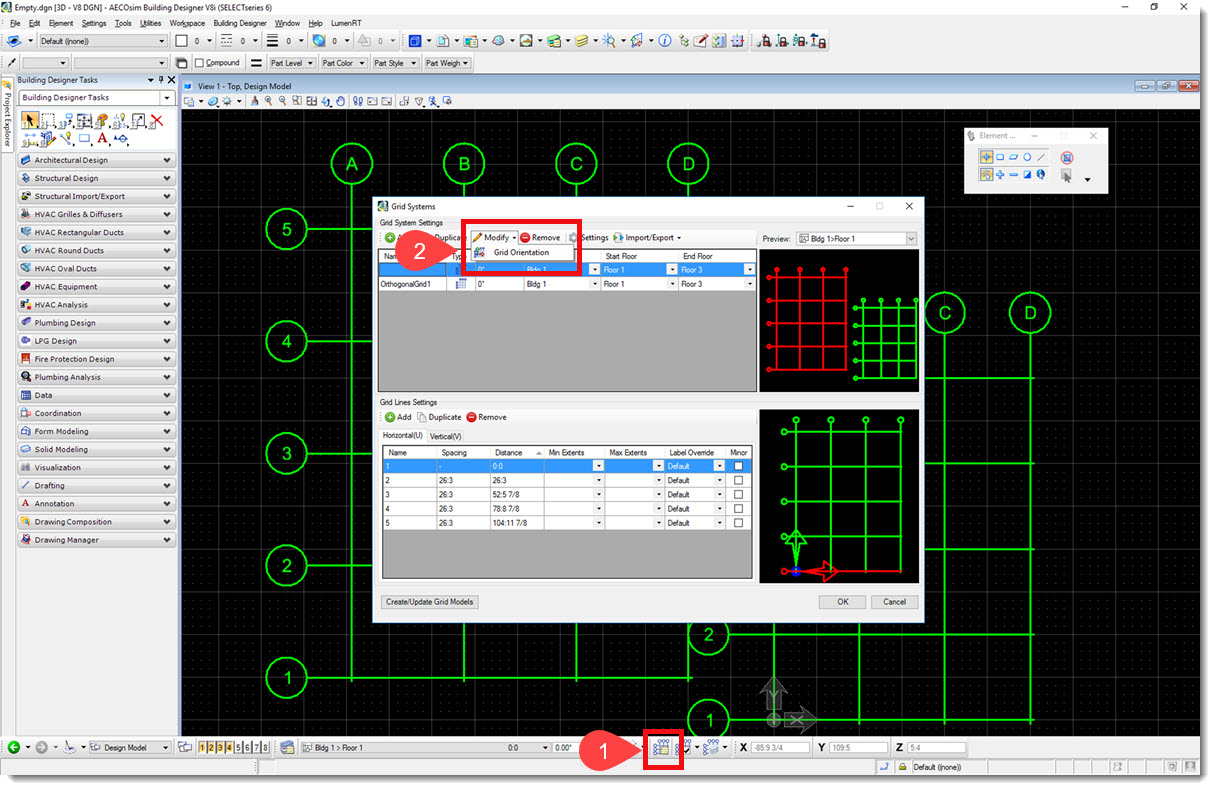 - Click on ‘Modify’ tab and ‘Select Grid Orientation’ option.
