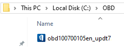 - Keep the setup files in one folder. Let’s say here as C:\OBD.