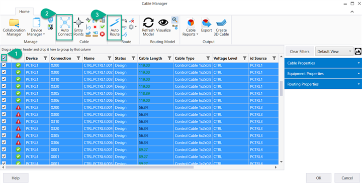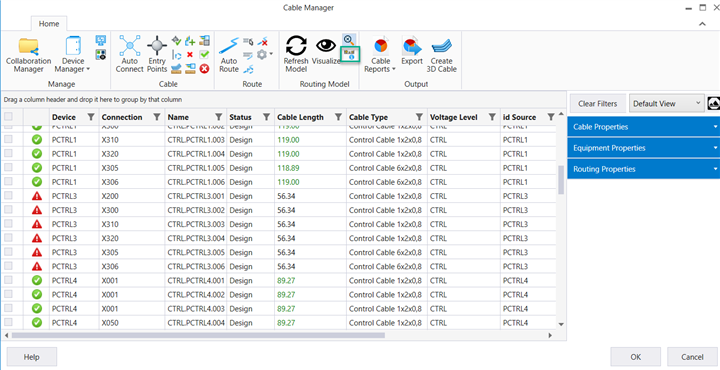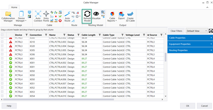 6.In the Cable Manager, from the Routing Model ribbon group in the ribbon menu, click on Refresh Routing Model to make the changes made in the Raceway model available in the Routing file.