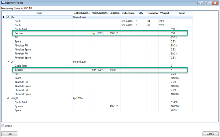10. Select the raceway route and the Raceway Fill info is displayed.