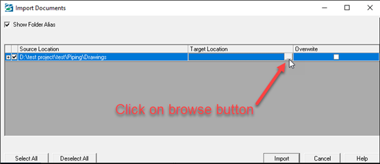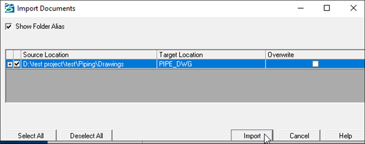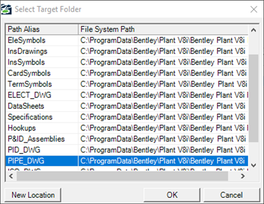 8.Select the target location and click OK. For e.g. for Piping Drawing file PIPE_DWG selected.