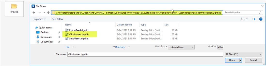 - Open the OPModeler.dgnlib from browse button, the path of which is attached below